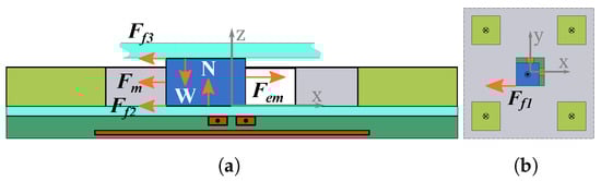 The force exerted on the MPM by the current-carrying wires beneath it is modeled with the Lorentz force equation. The current-carrying wires are considered as thin filaments, obtaining Equation (2), with I the current intensity through the wire and the vector along the wire length and the external magnetic flux density field.