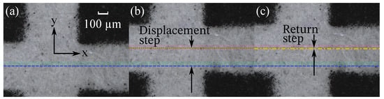 From Figure 10a (x-axis), the mean straightness error without holding current was , and it decreased to 4 with 1 holding current. From Figure 10b (y-axis), the mean straightness error without holding current was , and it decreased to with 1 holding current. These results show that the holding current reduced the straightness error, thanks to the use of the EDA silicon cavity wall (fabricated with microfabrication techniques) as a straight guide for the mpm movement.