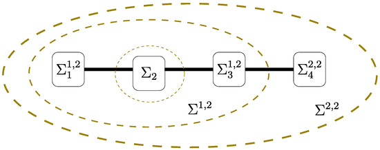 (Neighbors of ). Given two subsystems and of Σ, . is a first level neighbor of if , which is denoted by and . The set of all neighbors of the first level of is denoted by
