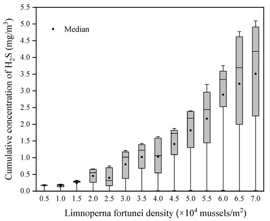 The change of H2S concentration under different densities of Limnoperna fortunei.