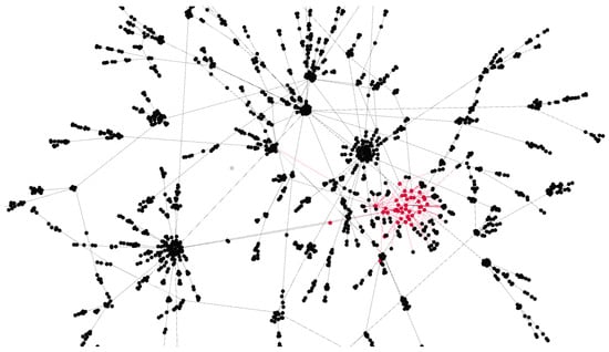 - Fruchterman, T.M.; Reingold, E.M. Graph drawing by force-directed placement. Softw. Pract. Exp. 1991, 21, 1129–1164. [Google Scholar] [CrossRef]