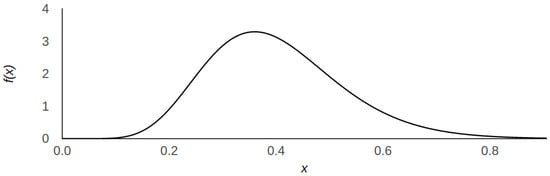 - Hate score is the central metric in our work and represents the users’ attitude and opinion about some polarised topic, which is discussed within a social network. For instance, immigration laws or equal rights of men and women. It is a real number in , where both extremes correspond to a very non-hateful and hateful opinions, respectively. We use the hate score as a user opinion value in our diffusion models but also as a threshold to characterise users. The same concept was also employed by Mathew et al. [6] who showed that hate score distribution on Gab is positively biased towards a non-hateful stance. Similarly, we define a user as hateful when and signal it as a red dot in the network graphical representation (see Figure 1). Otherwise, (i.e., when ) we assume the user to be normal and represent it as a black dot. We take this threshold in accordance to—and for better comparability with—previous work. As stated before, the amount of haters is known to be a minority of ca. 1%. Therefore, we model the hate score using the Gamma distribution as depicted in Figure 2, so that the area under curve for is ca. 0.01. For those rare cases when the Gamma distribution naturally exceeds the value of 1 we artificially set users’ hate score to the extreme stance of 1.