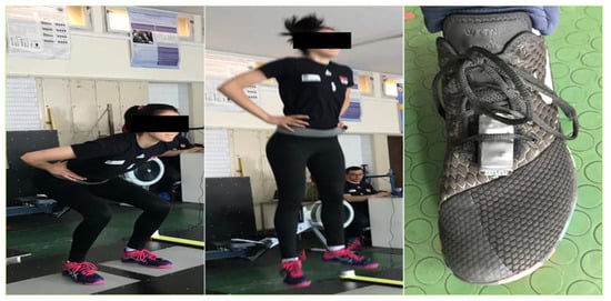 The testing of VJ height was performed within a single testing session. The session took place between 9 and 11:30 AM in the postseason period of the yearly training cycle. Prior to the testing, all participants performed a 15 min individual warm-up supervised by the team strength and conditioning coach. Measurement of the VJ height was performed for the two exemplary jumping tasks, SQJ and CMJ [11]. The subjects started both tasks standing on the FP shoulder-width apart with their hands on their hips. For the SQJ subjects were instructed to flex their knees to a self-selected position (90–120° knee flexion) which was maintained for 2 s (Figure 3—left). Afterward, subjects performed a jump without a counter-movement. For the CMJ the subjects were instructed to flex their knees to a self-selected position as quickly as possible which was followed by an immediate jump. For both jumps, it was recommended that at take-off the subjects leave the floor with the knees and ankles extended and land in a similarly extended position [13] (Figure 3—middle). The recovery period between the individual trials was set to 30 s while the pause between the jump modalities was set to a minimum of 3 min [32]. All subjects were instructed to jump for maximum height. The IMU was placed on the upper distal area of the metatarsal part of the foot of the participant, more precisely, at the level of 2nd to 3rd metatarsal bone as shown in Figure 3—right. The placement of the sensor close to the endpoint of the kinetic chain simplifies the detection of takeoff and landing instances and was previously used by [17,26].