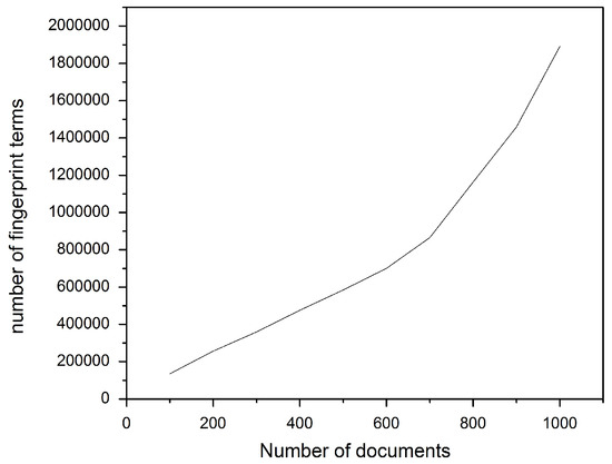 Current DSD methods can essentially be classified into two approaches: hashing [9,10,11,12,13,14,15] and vector space [16,17]. In the hash policy, a set of fixed-length substrings is extracted from the document. Then, the hash code is computed for each substring. Finally, a descriptive compressed fingerprint is generated from the hash codes. Two documents are considered similar if they contain a large number of shared fingerprint terms over and above a predefined threshold. This approach is best suited to capturing local similarities, that is, finding any overlapping content between two documents.