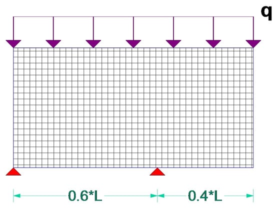 where the objective function (e.g., stiffness of the structure, and material volume) is to be optimized, and S is the design space of the unknowns’ vector x. The state quantities depend on the design variable . The objective function is subjected to the design variables and state quantities constraints to lead the optimization process to the desired solution. A so-called state function that corresponds to a certain state quantity can be devised, for example, as a deformation quantity along a certain degree of freedom (DoF). This state function can be integrated as a constraint function to the structural optimization problem, where it is commonly expressed such that , for example, the case where is expressed by the displacement quantities vector in a discrete finite element problem. In STO problems, the design variable x represents the presence or absence of material in a specific part of the design domain. It might involve features such as the size and/or the number of holes in the design domain. The general formulation of a STO problem is summarized below: