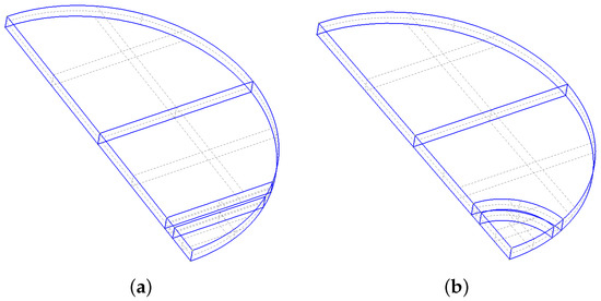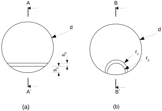 This approach is applied when comparing the polarization of two types of piezoelectric transducers, labeled (a) and (b), shown in Figure 1. The transducers differ in the shape of the electrode wrap-around. In case of (a), the overlay is in the shape of a circular segment, in case of (b), it is in the shape of intersecting circles.