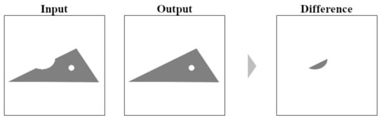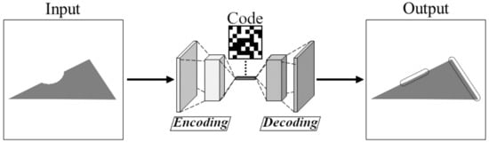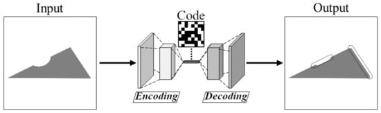 Our study re-explored autoencoders used to restore altered pictures [,,], but, the restored pictures are then used to detect the alterations that were present within the original images. These networks are trained on flawless images and are able to reconstruct defective images that are input during the test phase. The encoder adjusts its weights to reduce data effectively, while the decoder adjusts its to restore encoded data as closely as possible to their original versions. As the autoencoder will have been accustomed to process pictures that are not defective, it will not treat faulty ones differently and will try to reform them as if they were flawless. The output will be an approximation of the unimpaired version of the flawed part, because the encoder is fit to regular data and codes anything as such, while the decoder handles the seemingly “flawless” encoded data normally. In this way, the differences between the input and the output can be counted as irregularities.