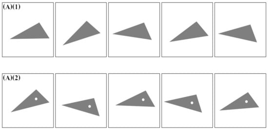 The sets of images we used were artificially generated with a drawing software. They are grayscale pictures of which dimensions are 256 × 256 px with a resolution of 72 dpi. Originally, the values of the pixels ranged from 0 to 255, but they were normalized to range from 0 to 1. One triangle about 199 px wide and 75 px tall is drawn within each picture. Although detailed analysis were not performed, simple preliminary experiments were conducted on quadrilaterals and circles and resulted in observations similar to that of triangles. The breakdown of the dataset is shown in the Table 1, which shows the five categories and their variations.