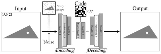 Noisy training of autoencoder is known to benefit its models [,,]. Noise injection [,] or slight corruption of its inputs [,] can improve its generalization ability: its aptitude to apply the operations it learned from known data to new sets of data. The noise acts like some sort of data augmentation, which prevents the network from overfitting on the training dataset. The encoding/decoding capability of the autoencoders can also benefit from this, by noising the values processed in the input and hidden layers, as shown in Figure 6.