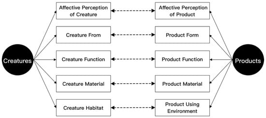 Affective perception, function, material and habitat of creatures, as well as affective perception, function, material and using environment of products, can all be described in natural language. Meanwhile, biological form and product form can be better expressed through pictures.