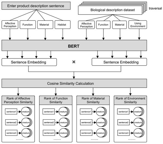 However, there are also limits in the above bionic reasoning methods. First, there is a lack of in-depth research on designers’ ideation in bionic reasoning. In addition, ‘bridging’ expanded the search result, but it is still a precise search and can only search for words, not sentences. There is a lack of fuzzy semantic search methods at the sentence level. Finally, perception matching requires a large number of users to score, which is inconvenient and inefficient.