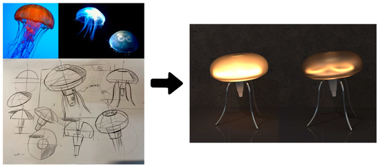 According to the inference result, jellyfish ranked first in function reasoning, and the function description “illuminate” of night light corresponds to “glow” of jellyfish’s function. At the same time, jellyfish also ranked in the top five in environmental reasoning and affective perception reasoning. Therefore, jellyfish was chosen as the source domain creature of the night light.