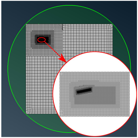 Concerning aerodynamics, MaPFlow [33,34,35] is used, which solves the compressible Unsteady Reynolds Averaged Navier–Stokes (URANS) equations under a cell-centered finite volume spatial discretization scheme. MaPFlow can handle both structured and unstructured grids, it is parallelized under the MPI protocol, and the grid partitioning is performed using the METIS library [36]. The convective fluxes are evaluated by solving the preconditioned local Riemann problem between the neighboring cells of each face, using the Roe’s approximate Riemann solver [37] with the Venkatakrishnan limiter [38]. The viscous fluxes are discretized using a central 2nd order scheme. For the reconstruction of variables at the interface a piecewise linear interpolation scheme is used. The evaluation of the spatial gradients of the primitive variables is done using the Green–Gauss formula, with a centered scheme approximation. Multiple options are available for turbulence modeling, such as the one-equation model of Spalart–Allmaras [39] or the two-equation model k-w SST of Menter [40]. Regarding laminar to turbulent flow transition modeling, the γ-Reθ model of Menter [41] is used. A Delayed Detached Eddy Simulation (DDES) approach is also implemented in MaPFlow, following the suggestions of [42]. Unsteady simulations are performed through an implicit second order backwards difference scheme [43], along with a dual time-stepping technique [44] in order to facilitate convergence. Finally, the implicit operator inversion is accomplished with the use of the Gauss–Seidel iterative method alongside with the Reverse Cuthill–Mckee reordering scheme.