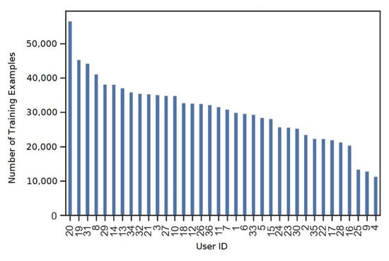 The initial data from the dataset are highly unbalanced. It can be seen from Figure 3 that a greater amount of data for walking and jogging activities is present compared with other activities. This is because the number of training examples or samples for those two activities have been collected in abundance compared with the rest of the activities during the actual experiment. The training examples or samples are crucial for model development and human activity prediction. As CNNs are supervised deep learning models, they require huge set of input data and known responses to the output data for learning. Greater number of samples assist in better learning of the CNN model and hence lead to better prediction, provided that the number of samples for all the six activities are equal. It is also clear from Figure 4 that the total number of participants in the experiment is 36.