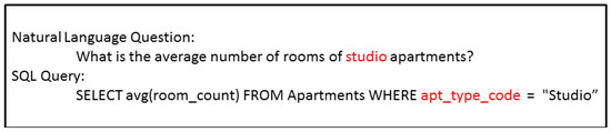 Recent work in the text-to-SQL research area mainly focuses on improving two significant aspects, syntactic accuracy and semantic accuracy. Semantic accuracy is to interpret the user’s intention correctly and map it to a given database schema. The semantic gap between mapping user’s preferences from natural language query into schema nomenclature is also known as a mismatch [9,10] or lexical problem [11,12]. Often, exact column names are not mentioned in the text query. Instead, one of the synonyms of column names are mentioned, or the intended column’s value is mentioned. This scenario makes mapping the intended column to the actual column name in the database vague. Figure 2 elaborates the issue more precisely with an example. The natural language question in Figure 2 does not have the exact intended column name in the SQL query, which makes the column prediction vague in the given example.