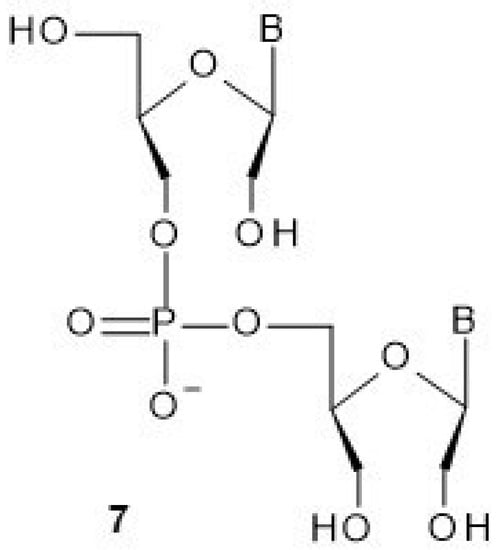 - Schneider, K.C.; Benner, S.A. Oligonucleotides containing flexible nucleoside analogs. J. Am. Chem. Soc. 1990, 112, 453–455. [Google Scholar] [CrossRef]