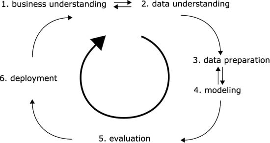 - Chapman, P.; Clinton, J.; Kerber, R.; Khabaza, T.; Reinartz, T.; Shearer, C.; Wirth, R. Step-by-Step Data Mining Guide. Available online: https://the-modeling-agency.com/crisp-dm.pdf (accessed on 11 November 2021).