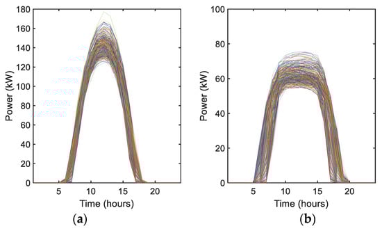Historical data of solar PV power used for the p-efficient point method: (a) the historical data for typical summer days; (b) the historical data for typical winter days.