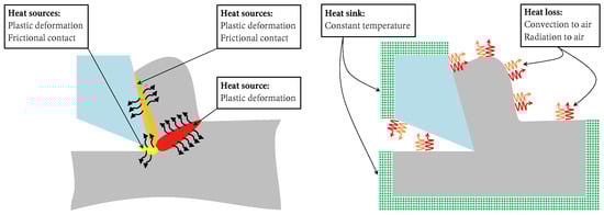 Illustration of heat sources and thermal boundary conditions in orthogonal cutting.