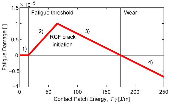 It is important to bear in mind that the damage index function is specific for the sites studied in Burstow’s report [14]. To assess different track sections, some modifications are required, as applied by [37,38,39]. This can be done recalculating the turning points of the damage function using the equation