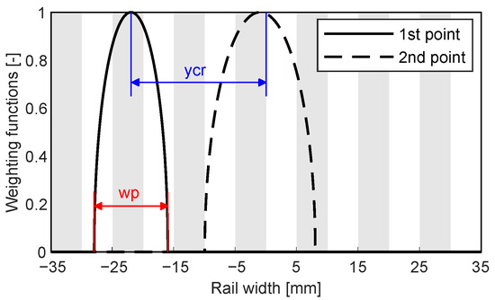 which is calculated for the analyzed contact point at each cross-section (Figure 3). The parameters and define the width of the contact patches and their lateral position at centre, respectively. The value at each cell reads
