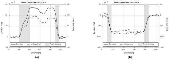 Track geometry of the considered sections: (a) Section 1; (b) Section 2.