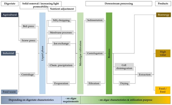 - Xia, A.; Murphy, J.D. Microalgal Cultivation in Treating Liquid Digestate from Biogas Systems. Trends Biotechnol. 2016, 34, 264–275. [Google Scholar] [CrossRef]