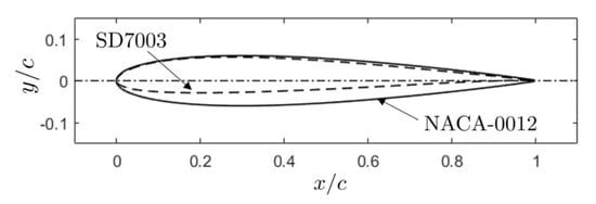 NACA-0012 and SD7003 airfoils employed in experimental study of Yakhina et al. [].