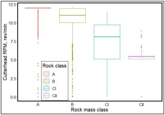 - The most influential TBM operating parameter in classifying the rock mass is the cutterhead RPM followed by cutterhead thrust. The two least influential parameters are stroke speed and rate of penetration. Therefore, TBM thrust and RPM can be adjusted in real-time by determining the rock mass class being excavated using the ML models developed in this paper.