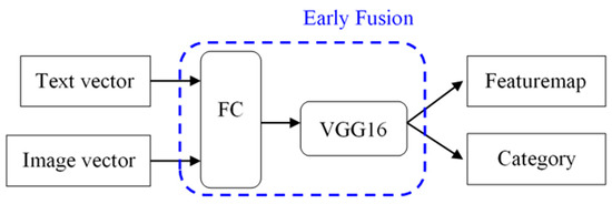 As shown in Figure 3, first, since the sizes of text and image embeddings are different, we use a fully connected (FC) neural network to fuse these vectors. There are two different ways of concatenation: text vector concatenated with images or image vector concatenated with texts. Next, we extract the output of different layers in the VGG16 model including the feature map and the final classification result or category as the combined representation for the texts and images.