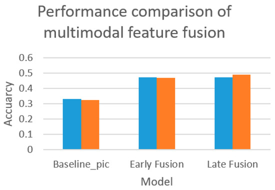 To validate the effectiveness of multimodal feature fusion, we further compared the performance of combining text and image features with CNN models using early fusion and late fusion. In early fusion, we concatenate text and image features as inputs to a single CNN model, while, in late fusion, we separately input text features and image features into TextCNN and ImageCNN models, with the resulting feature map and categories are combined as the user feature for recommendation. The performance comparison is shown in Figure 9.
