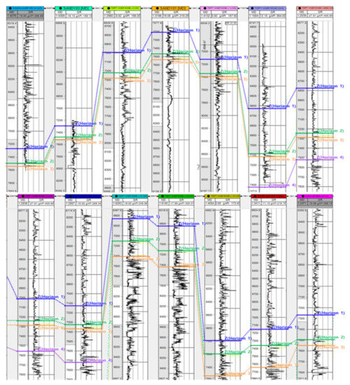 The layer formation process of the reservoir by connecting the similar trends in the gamma ray logs obtained from 17 wells.