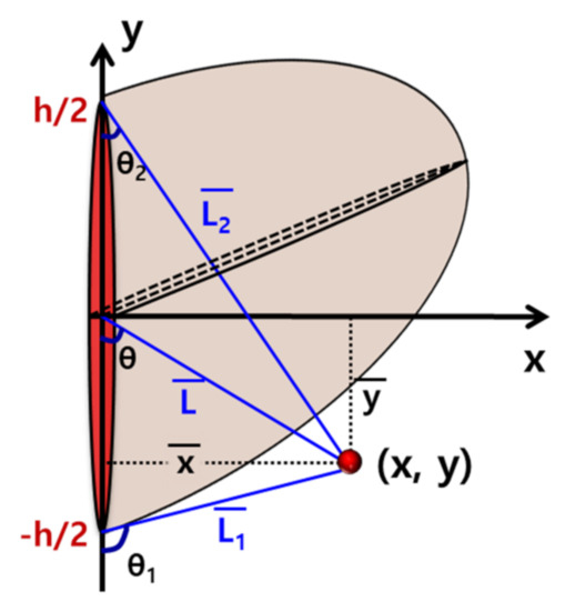 And x, y are the coordinates and , , , , are the distances in Figure 6.