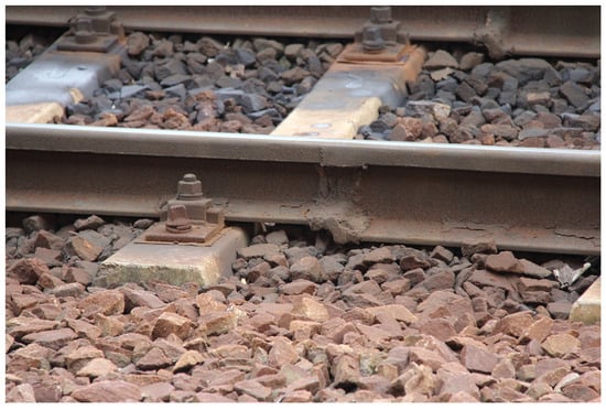 Defects related to improper use or handling of rails are usually caused by train wheels spinning on rails (this produces the so-called wheelburn defect, shown in Figure 4) or by sudden train brakes [].