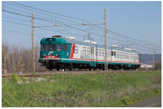 The ultrasonic testing vehicle “us1-Galileo” employed by the Italian railway infrastructure manager, Rete Ferroviaria Italiana (RFI), is shown in Figure 9.