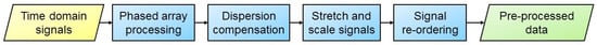 - Wilcox, P.D. A rapid signal processing technique to remove the effect of dispersion from guided wave signals. IEEE Trans. Ultrason. Ferroelectr. Freq. Control 2003, 50, 419–427. [Google Scholar] [CrossRef]
