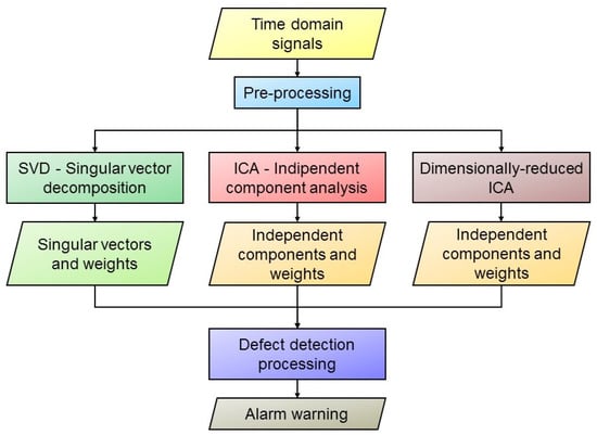 - Dobson, J.; Cawley, P. Independent component analysis for improved defect detection in guided wave monitoring. Proc IEEE 2016, 104, 1620–1631. [Google Scholar] [CrossRef]