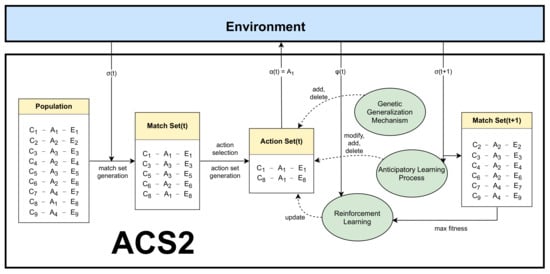 - Butz, M.V. ACS2. In Anticipatory Learning Classifier Systems; Springer: Berlin, Germany, 2002; pp. 23–49. [Google Scholar]