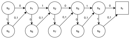 Barry [33] introduced the Finite State World (FSW) environment to investigate the limits of XCS performance in long multi-steps environments with a delayed reward. It consists of nodes and directed edges joining the nodes. Each node represents a distinct environmental state and is labeled with a unique state identifier. Each edge represents a possible transition path from one node to another and is also labeled with the action(s) that will cause the movement. An edge can also lead back to the same node. The graph layout used in the experiments is presented in Figure 4.