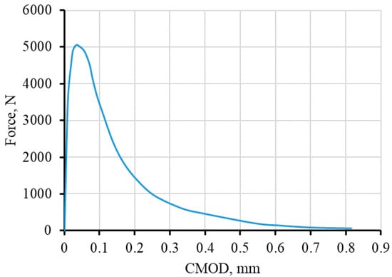 The diagram in the axes “force” and “CMOD” was constructed based on the test results and compared with the data from laboratory tests under bending (see Figure 7).