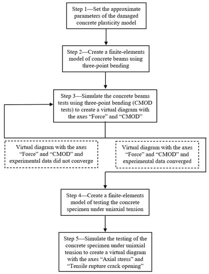 The sequence of selection of damaged concrete plasticity model parameters is shown in Figure 5 as flow chart.