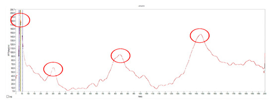 The measurement with this type of input proceeds in two phases: A first exploration, carried out with a large frequency range, (0–2000 Hz), with the purpose of identifying the resonance peaks (Figure 3), followed by a detailed analysis carried out around the resonance peaks with very small frequency increases in order to accurately collect the most significant data relating to the individual modes.