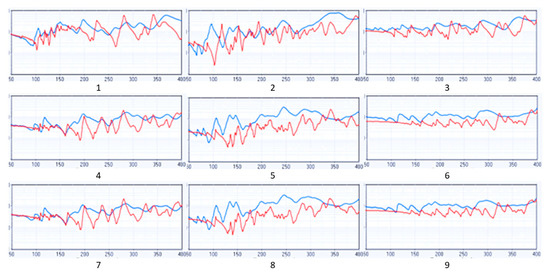 To numerically evaluate the numerical-experimental correlation, the Frequency Response Assurance Criterion (FRAC) was chosen (Equation (4)), its values ranging in the interval [0–1]: A FRAC value equal to 1 indicates an optimal correlation and values greater than 0.90 are considered satisfactory.