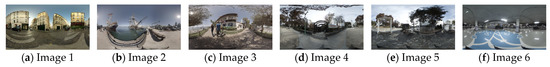 Test images: six equirectangular images where the horizontal and vertical FOVs are 360° × 180°, respectively.
