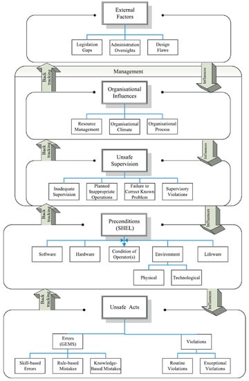 - Shappell, S.A.; Wiegmann, D.A. The Human Factors Analysis and Classification System—HFACS; Federal Aviation Administration: Oklahoma City, OK, USA, 2000.