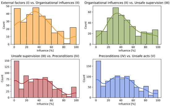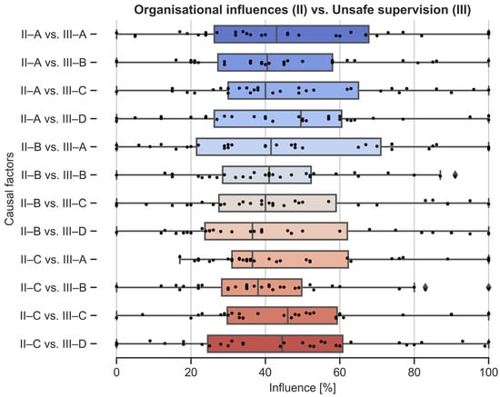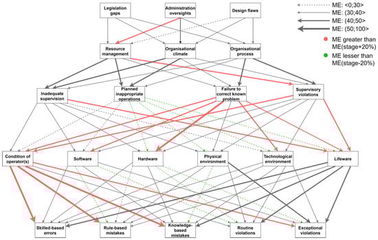 For the herein study, it was not distinguished between the positive and negative influence (amplification/reduction). Instead, the mere influence of one factor on another has been analyzed. This is generally in line with the principles of HFACS which is based on the linear model of accident development. In this model, the occurrence of a certain causal factor increases the likelihood of another’s emergence. The scope and purpose of the herein study are to assess the magnitude of such an increase.