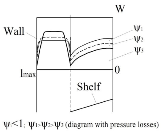 An analysis of this expression showed, first, that the local velocity of the gas flow above the holes in the vertical direction decreases linearly depending on the shelf perforation degree ψ and nonlinearly in the X direction along the shelf length to the outloading space (Figure 3).