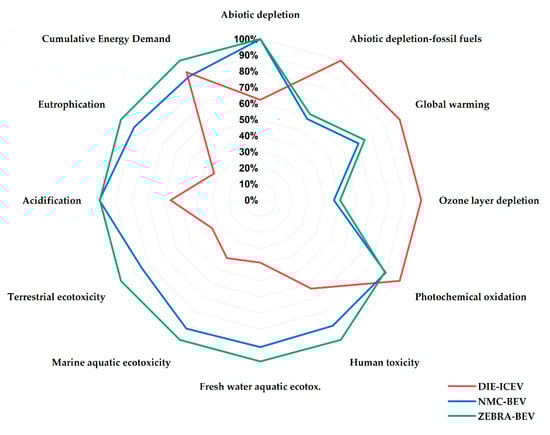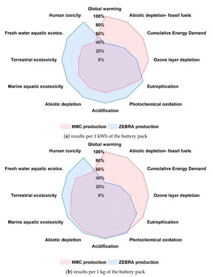 In this study, NMC111-BEV and ZEBRA-BEV were first assessed in a stand-alone analysis (Figures S5–S7) and then a comparative analysis of the two BEV alternative systems was conducted.