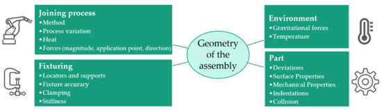 SMs for geometrical properties map physical effects of the real-world assembly to geometrical deviations of the assembly. Influences on the geometry of the assembly from all four mentioned steps of the joining process need to be considered in the SM.
