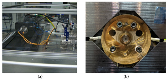 The contact point between the physical pump and the computational modeling is the testing bench. The experimental setup hosts the sensors that are used to collect performance data and feed it to the simulation model. Figure 3 presents the testing bench setup used and a manufactured pump mounted in the bench with a translucent cover.